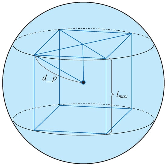 First, according to the equations discussed in Section 3, the control center computes the probabilistic neighborhood range of the required parameter p. In order to ensure that all the nodes in one grid can send their storage data to the AUV, the grid must be fully included in the probabilistic neighborhood contour. As shown in Figure 2, the maximal unit cube is an inscribed regular hexahedron of the probabilistic neighborhood contour sphere. Clearly the final grid side length l can be calculated by: