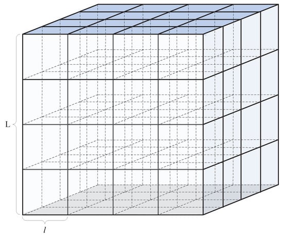where is the side length of inscribed regular hexahedron, and L is the side length of network. Then, the 3D UASN is divided into cubes with the side length of l as shown in Figure 3.