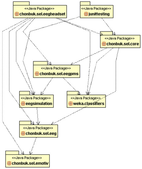 - chonbuk.sel.eeg: this package has been placed between ‘emotiv’ and the other system packages. It has been used for calling the functions of Edk from our programs which is a kind of interfacing. This package contains an EEGDriver class, which is a kind of singleton instance which provides the real-time EEG data to caller programs.