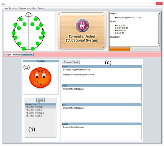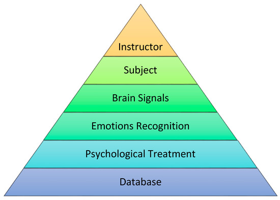 In recent years, emotion recognition using brain signals has become more popular due to its low cost with a vast application domain, such as medical applications, electroencephalogram (EEG)-based games, and computer aided systems for students with mental disorders [1,2,3,4]. Human computer interaction has become a part of everyday life. Similarly, emotions are important and constantly exist in a person’s daily life. Emotion-related expression is ubiquitous in the daily routine [5,6,7]. It is an important factor in human interaction and communication. Emotions can provide many possibilities for enhancing the interaction with human subject using the emotion-based intelligent systems, e.g., affective interaction with autism or epilepsy patient [8]. Human learning process is significantly influenced from emotional behavior of subject [2,9,10]. More specifically, while students are attentive with pleasant feelings, they will definitely produce positive results.