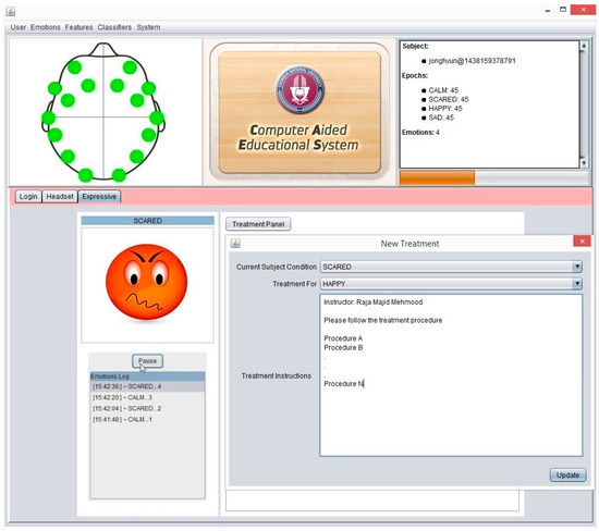 The expressive mode of the system detects the current mood of subjects and shows the emotional avatar. Here, an instructor may add or update the treatment procedure of subjects according to a subject’s mental condition. The expressive module shows the treatment suggestions to the instructor in the case of an unpleasant situation of a subject, if any treatment guideline is already stored in previous sessions. Furthermore, the following pseudocode explains the systematic flow of the proposed system in a real time environment.
