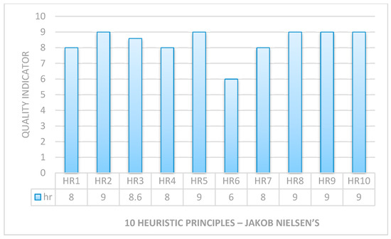 For testing purposes, we graded each of the above rules between 0 and 9 for every heuristic test (five times). Low system quality was graded as zero (0) and high system quality was graded as nine (9). Later, we estimated the overall performance of the system by simply averaging the results from each test against each rule and the results are presented in Figure 17. Only HR6 shows a lowest rating, which is obvious because there is no auto text prediction in the case of treatment. The overall heuristic results show the successful test of system usability of our CAES development.