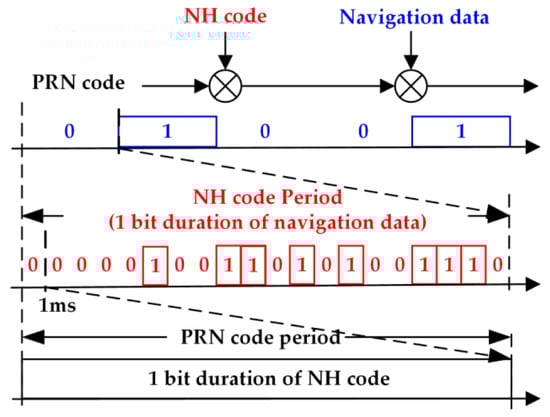 The application of global navigation satellite systems (GNSS) in harsh environments is drawing increasing attention among civilian users [1]. As one of the world’s major navigation system, BDS is scheduled to be completed in 2020, and will eventually operate in ocean, urban, and indoor environments. To improve the capability for anti-narrowband interference and provide more precise ranging information, a secondary modulation of the NH code is introduced [2,3]. However, the periodicity of the transmitted sequence was broken by the NH codes, leading to more polarity changes, also known as bit transitions.