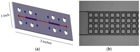 Future work will address issues raised from the current design. For example, the flow rate used for this study was the same or slower than other research articles, as listed in Table 1. To be competitive at providing rapid analyses, a faster flow rate will need to be achieved. Device features such as pillar size, shape, and spacing will also be changed to accommodate 1-μm-sized particles, as the end goal is to trap bacteria and prevent pearl chain formation. The current setup primarily traps particles at the first column of pillars with secondary trapping within the array likely due to pearl chain formations. As the design was created as a proof of concept to perform cDEP and Raman spectroscopy simultaneously, the authors acknowledge that the arrangement has not been optimized for trapping efficiency. To improve trapping efficiency and selectivity, smaller pillar sizes will be incorporated with columns of pillars spaced further away from each other in future devices. In addition, structures will need to be arranged for simultaneous separation of multiple particles in a sample as demonstrated in other studies [35,36].