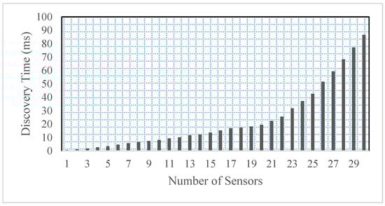 An experiment is performed on discovering 30 sensors present in the proposed smart home scenario. The experiment reveals that if 20 sensors are turned on and discovered at once, it requires around 19 s to fully connect with the framework. However, the discovery time increases if more than 20 sensors are turned on at once.