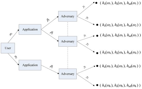 From the equation above, it can be noted that the discount coefficient of the player reflects the player’s preference for time; the larger δ indicates that the player pays more attention to the the game gains in the latter stage. In this paper, we use , and to represent the discount coefficients of the user, the application and the adversary, respectively.
