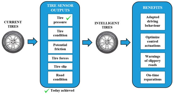 Thus, an intelligent tire could help to prevent accidents and become a key part in vehicle safety systems. Hence, the intelligent tire concept would have the final aim of monitoring, in real time, the forces at the tire-road interface, contact patch length, friction coefficient, slip angle, road condition, and tire wear.