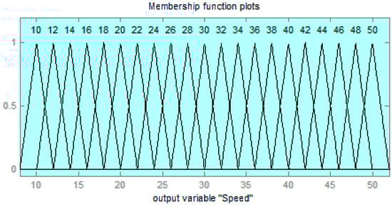 As shown in Figure 15, triangular functions have been used. By way of example, it shows the manner in which the speed was broken down into 21 levels from 0 to 55 km/h: