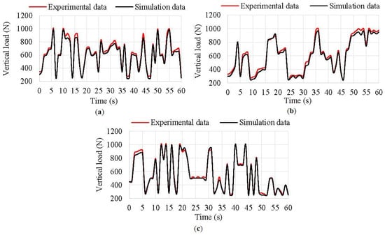It has to be noted that the variation in time of the values of the x-axis (Figure 16 and Figure 17) corresponds to each instance of the simulation, and not to a real case. Since speed and vertical load values have been estimated taking into account the experimental strain data at steady state, where acceleration and braking processes are not severe.