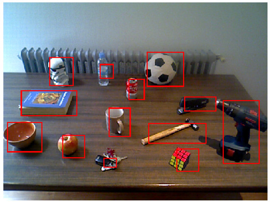 - Elfring, J.; Jansen, S.; van de Molengraft, R.; Steinbuch, M. Active Object Search Exploiting Probabilistic Object–Object Relations. In RoboCup 2013: Robot World Cup XVII; Behnke, S., Veloso, M., Visser, A., Xiong, R., Eds.; Springer: Berlin/Heidelberg, Germany, 2014; pp. 13–24. [Google Scholar]