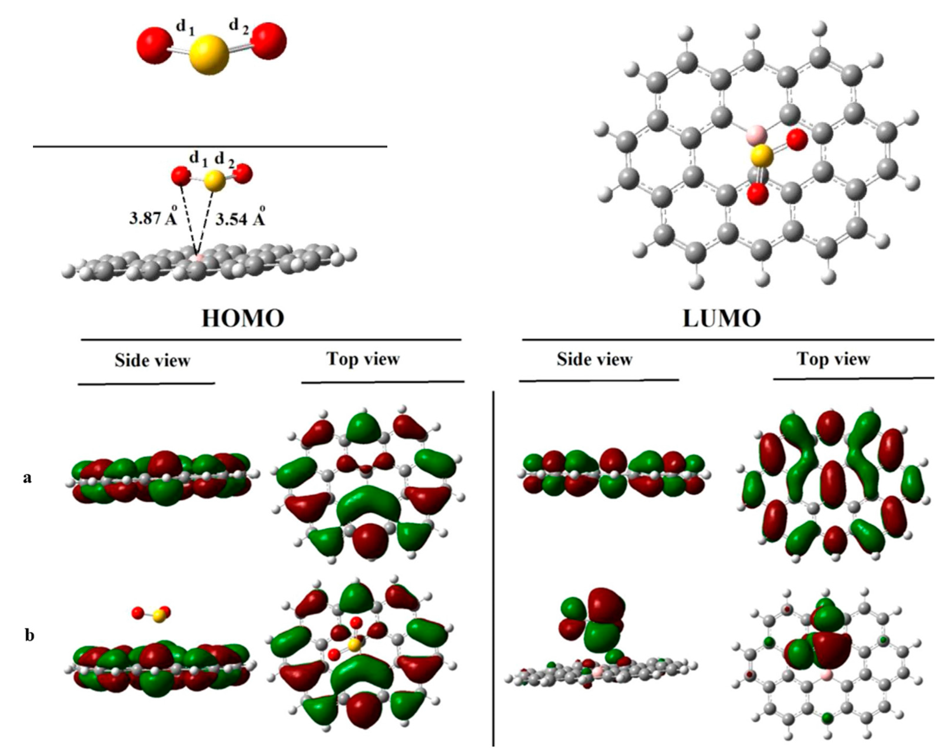 - Rad, A.S.; Shabestari, S.S.; Mohseni, S.; Aghouzi, S.A. Study on the adsorption properties of O3, SO2, and SO3 on B-doped graphene using DFT calculations. J. Solid State Chem. 2016, 237, 204–210. [Google Scholar] [CrossRef]
