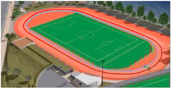 In this paper, we present an EM system developed and realized to allow a person with visual impairments to run along a racetrack completely free, without the need for a sighted guide. As with the system described above, a safe path is defined to let the athlete run autonomously, simply wearing a receiving device and following the vibro-tactile warnings generated by two sensors on his arms. The main difference with the system proposed in [] is the employment of wires lying on the ground to realize the fixed infrastructure to be placed along the athletics track of a stadium. In detail, this solution relies on the generation of two EM boundaries with the use of two wires placed directly on the ground perimeter of a standard athletics track (400 m length), as schematically depicted in Figure 1. A variable current flows through each wire whose magnetic field can be detected by a coil (the receiver) worn by the runner. Therefore, the transmitter is made of two concentric giant rings and the receiver is a loop realized with a 40-turns flat cable wire able to increase its sensitivity.
