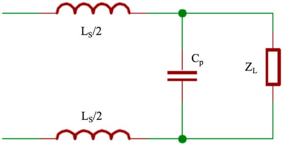 The theoretical value of the loop input impedance calculated through (1) highlights a problem posed to properly connect the 400 m long loop with the generator: the expected impedance value is high, therefore a suitable matching network has to be designed so that the desired current flows along the wire. The matching network of Figure 6 was adopted. The capacitance in parallel compensates the load inductance, whereas the series inductances provide the desired resistance value for the generator.