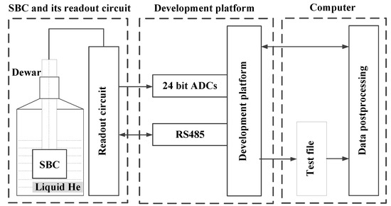 As SQUIDs deploying low-transition temeprature superconductors (LTS) can provide a lower magnetic flux noise floor and the corresponding technology is much more refined than high-temperature ones, we adopt the LTS sensor as the antenna of the ELF/VLF receiver. The LTS receiver used in our experiment was fabricated by the Shanghai Institute of Microsystem and Information Technology (SIMIT), Chinese Academy of Sciences [22]. A block diagram of the receiver is shown in Figure 1.