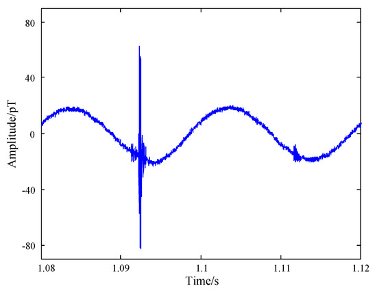 It can be verified in Figure 4 that the measured magnetic data suffered from harmonics (fundamental frequency is 50 Hz) with large amplitude up to 20 pT. As the amplitude of harmonics are much larger than the atmospheric noise, it has to be eliminated before further data processing and analysis. The received signal consists of the atmospheric noise contaminated with harmonics , given by