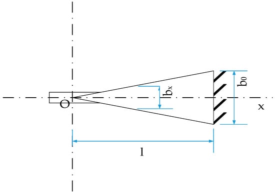 where b0 denotes the beam width at the fixed end, l means the height of the triangle. Substituting Equation (2) into Equation (1), one can obtain: