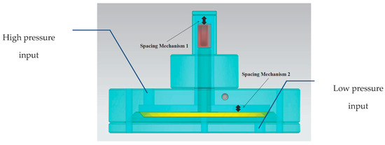 In the real design, we enabled the sensor to resist overload by introducing a position limiting mechanism [13]. In our structure, two points are needed in the careful design, as seen in Figure 5; one is for magnet B to move and the other is for the elastic corrugated diaphragm. The two points are limited to prevent the damage of the diaphragm and magnet and to avoid the invalidity of the sensor.