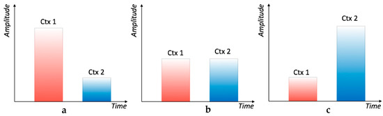 Comparison between the signals: (a) athlete position close to the left wire; (b) athlete in the central position (secure zone); and (c) athlete position close to the right wire.