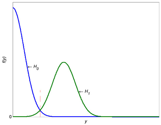 The curves of the probability density functions in the two status are depicted in Figure 3. The red dashed line shows the optimal threshold.