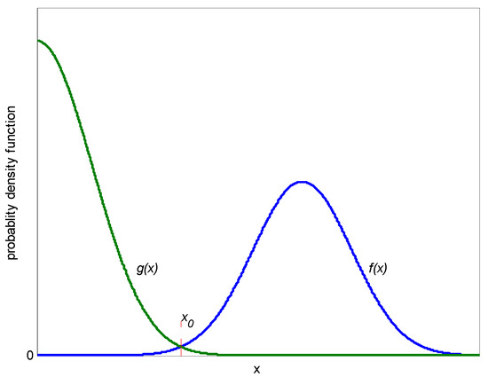 However, from (27) and (28) we find that the optimal x0 is not easy to calculate. Besides, the integral in (29) is hard to calculate even when we get the accurate value of x0. As is known 1 >> , the probability density function curves of |L(bi)| and |L(bk)| is shown in Figure 4.