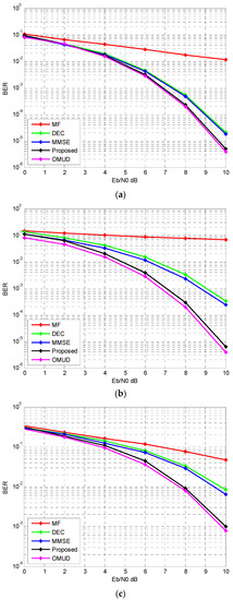 - Varanasi, M.K.; Aazhang, B. Near-optimum detection in synchronous code-division multiple access systems. IEEE Trans. Commun. 1991, 39, 725–736. [Google Scholar] [CrossRef]