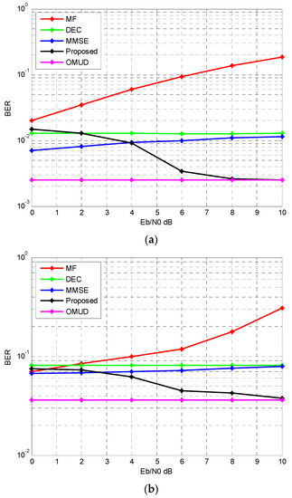 - Li, J.Y.; Gang, W.; Chen, F.J. On minimum-BER linear multiuser detection for DS-CDMA channels. IEEE Trans. Signal Process. 2007, 55, 1053–1103. [Google Scholar] [CrossRef]