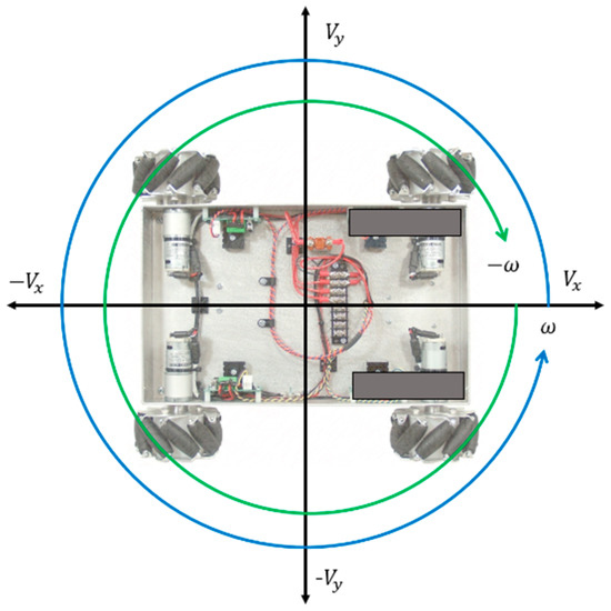 Figure 11 presents the control factors for the main controllers. The control factors are composed of (front and rear speed), (left and right speed), and ω (angular speed). All robots in a swarm accomplish their goals by calculating these control factors through their main controllers.
