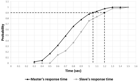Cumulative distribution of master and slave’s reaction time to user activity change.