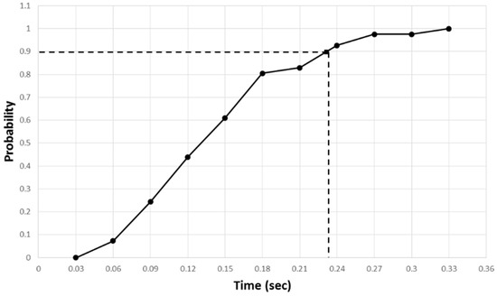 Figure 20 shows the cumulative distribution of the master and slave’s reaction time to user activity change. The evaluation result showed a 90% probability that the master’s reaction time would be within 1.1 s and a 90% probability that the slave’s reaction time would be within 1.2 s. Figure 21 shows that the slave responded within 0.24 s with a 90% probability, based on the user activity information from the robot. Through repeated evaluations, we empirically confirmed that this time interval was sufficient for the slave to drive in synchronization with the user activity. Therefore, the communication-time delay between the master and the slave needed to synchronize with the user activity, is acceptable for achieving the goal proposed in the study.