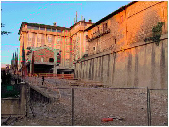 The historic center of L’Aquila is still largely uninhabited after a major seismic event on 6 April 2009 (Figure 1); thus, it may have undergone a change in its microclimate due to the sudden absence of inhabitants, which may have caused a lower impact in heating during winter. It is likely that an equal but opposite change may have occurred in areas of new settlements, originating after the seismic event.