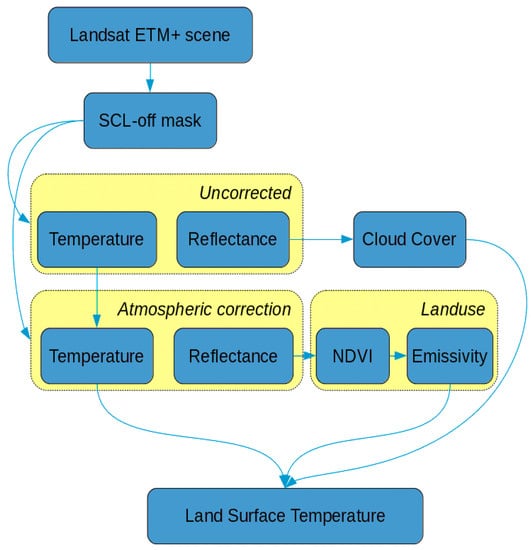 After processing, each LST map was cropped to the study area. The complete flowchart of the procedure is shown in Figure 5.