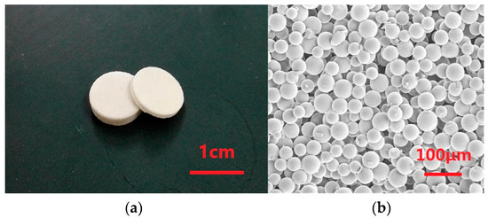All parameters of the microspheres were measured by a laser particle size analyzer (Mastersizer 2000), to specify the PSD since the basic PSD statistics, such as the origin moment and the Trask sorting coefficient [32], can be calculated from them. The porous transducers, depicted in Figure 2, were fabricated in molds by sintering the microspheres and mixtures in a furnace.