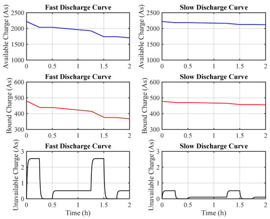 where is the discharge capacity at discharge time t. Considering that the battery is fully charged at the beginning of the experiments, and , then: . In this condition, Equation (4) representing the available charge (i) is modified to: