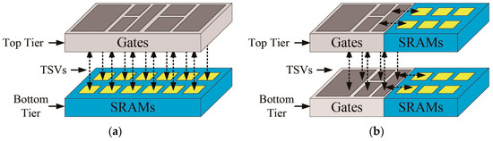 - Saito, H.; Nakajima, M.; Okamoto, T.; Yamada, Y.; Ohuchi, A.; Iguchi, N.; Sakamoto, T.; Yamaguchi, K.; Mizuno, M. A chip-stacked memory for on-chip SRAM-rich SoCs and processors. IEEE. J. Solid Sate Circ. 2010, 45, 15–22. [Google Scholar] [CrossRef]