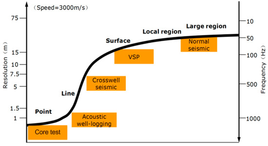 Frequency band range and longitudinal resolution of multi scale geophysical data [100,101,102].