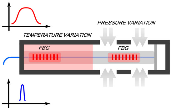Schematic diagram of FBG sensor for simultaneous temperature and pressure measurements simultaneously.