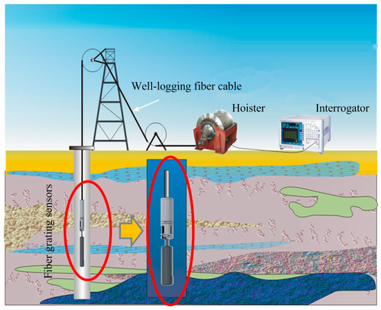 Temperature information is a key parameter in oil and gas well-logging and health monitoring of pipeline fields, especially for deep and ultra-deep well-logging. It is necessary to permanently monitor high temperature in deep wells. FBG temperature monitors need heat-resistant packaging materials to maintain calibration stability in the high temperature environment over long periods. To date, many techniques have been developed to improve the high temperature resistance of FBGs, such as tailoring the glass composition [122,123], specific thermal cycling or annealing processes of the gratings [124,125], and inscribing gratings using femtosecond lasers [59,126,127]. The measurements of high temperature up to 1100 °C have been realized, but the researchers still seek new methods to simplify the fabrication process and reduce costs.