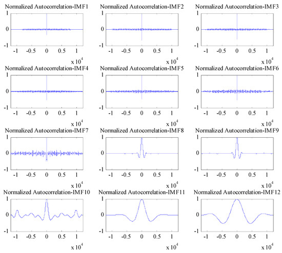 Normalized autocorrelation of IMFs (Intrinsic Mode Functions).