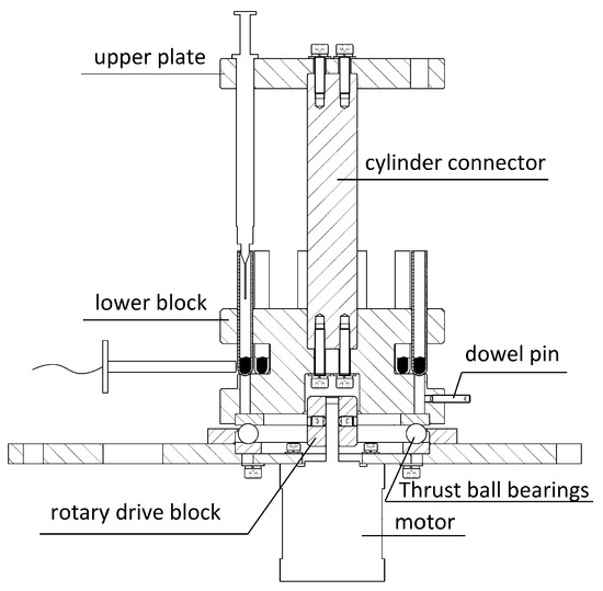 The rotatable sample-positioned stage made of aluminum was a principal component in this module. This stage was assembled with three elements: the upper plate with holes evenly distributed along the circumference to position one-off injectors, the lower block with holes distributed in the same way immediately beneath to position tubes, and the cylinder connector placed between them to connect them with hex bolts. The whole stage was placed on the base of the instrument, embedded into a rotary drive block fixed on the shaft of the driver motor by a rectangle-shaped hole on the bottom of the lower block. Thus, the stage could be driven to rotate together with the rotary drive block by the rotation of the motor. At the same time, it was able to be taken out to exchange injectors and tubes. Thrust ball bearings were placed between the stage and the base, making it smoother in rotation. A dowel pin was mounted on the under lateral of the lower block, together with a photo-electric switch sensor installed on the base of the instrument near it for orientation. In the spinning of the stage, the instant the dowel pin triggered the photo-electric switch sensor, the microcontroller would stop the motor and the stage now reached the initial working position.