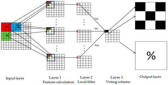 - non-overlapping box decomposition of the tested image is made. So, a grid of boxes is created and its dimension will represent the resolution of flood segmentation. Thus, if the image dimension is and the box dimension is , then the resolution of segmentation (BMP dimension) is .