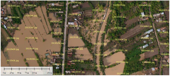 - From the orthophotoplan, adjacent cropped images of dimension 6000 × 4000 pixels are investigated for flood evaluation.