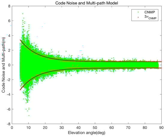 Figure 3 shows the CNMP distribution for the elevation angle and the 3-sigma line estimated by the model from Equation (36) and