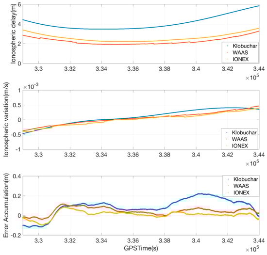 IONEX (ionospheric exchange) data and the Klobuchar model can be used to calculate the rate of the ionospheric delay, and we need to prove that the SBAS MT 26 provides better performance or a more practical method than these alternatives, the Klobuchar model and the IONEX data. IONEX data containing vertical total electron content (TEC) is provided by the IGS (international GNSS service) global network with a latency of 24 h to 11 days. The estimation performance of the IONEX is excellent enough to be usually used as a true reference of the global TEC, but it cannot be used in a real-time process because of the latency. Several service providers offer real-time TEC data in a suitable format such as SSR (state space representative), but an additional data channel is required to implement it for the local DGNSS or SBAS DGPS. In this sense, IONEX data is not a practical option to be used in the legacy DGNSS despite its superior performance. On the other hand, the Klobuchar model is an effective approach to mitigate the ionospheric delay for GPS single-frequency users [