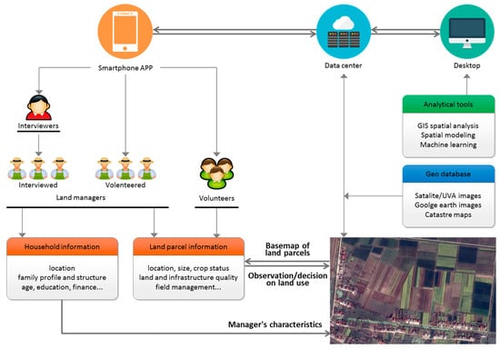 - In addition to interviewers and land managers, the third user group is volunteers who are willing to contribute their witnessed land use information on land parcels. However, as they are not land managers, some information is not required (e.g., the household characteristics). The setup of volunteer users expands the number of sensors that would further enlarge the coverage of crowdsourcing. For example, it will make a better involvement of scientific researchers in a form that they are able to contribute real observing results rather than organizing household surveys.