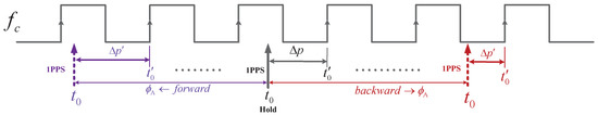 16], it is necessary to regularly adjust the phase and frequency of the onboard clock. Most of the signal generation and the time counts in the payload of a navigation satellite are directly or indirectly derived from a single 10.23 MHz clock; hence, the 10.23 MHz is adjusted. However, the work processing clock of the ISL payload (here after referred to as