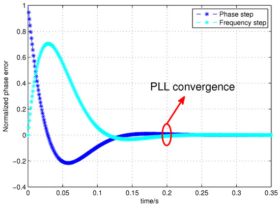 , is 1 ms. Then, the response of the second-order PLL error system function under a frequency and phase step excitation is shown in the