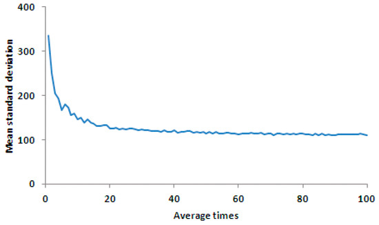 As illustrated in Figure 8, the larger the number of averaging measurements, the smaller the standard deviation of the corrected result. The error was reduced dramatically when the number of averaging was increased from three to 20. When the number of averaging was larger than 20, the error was reduced more slowly.