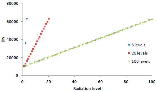 Case 2: the number of pixels, the grouping method and the number of measurements at each level were all fixed; however, the number of the radiance level was not fixed;