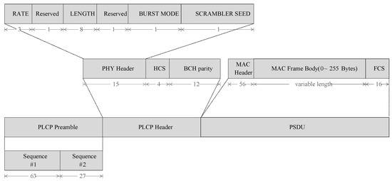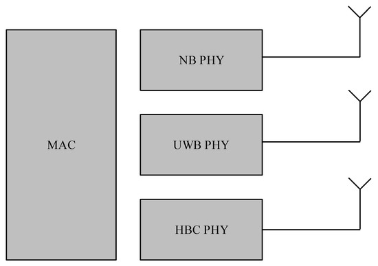 The UWB PHY intends to actualize high performance, low complexity and power consumption, and operates in the low frequency band (Channels 0–2) and the high frequency band (Channel 3–10). As shown in Figure 4, the UWB PHY supports two operational modes, high Quality of Service (QoS) operational mode and default mode, where the first one is appointed for vital healthcare applications, and the second mode is used for medical and non-medical applications.