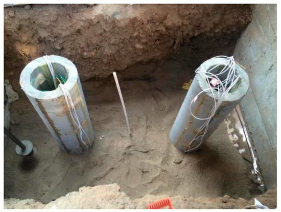 - Xiao, H.; Cui, X.; Lei, W. A bored pile deficiency detection method based on optical fiber temperature measurement. Opt. Fiber Technol. 2015, 21, 1–6. [Google Scholar] [CrossRef]